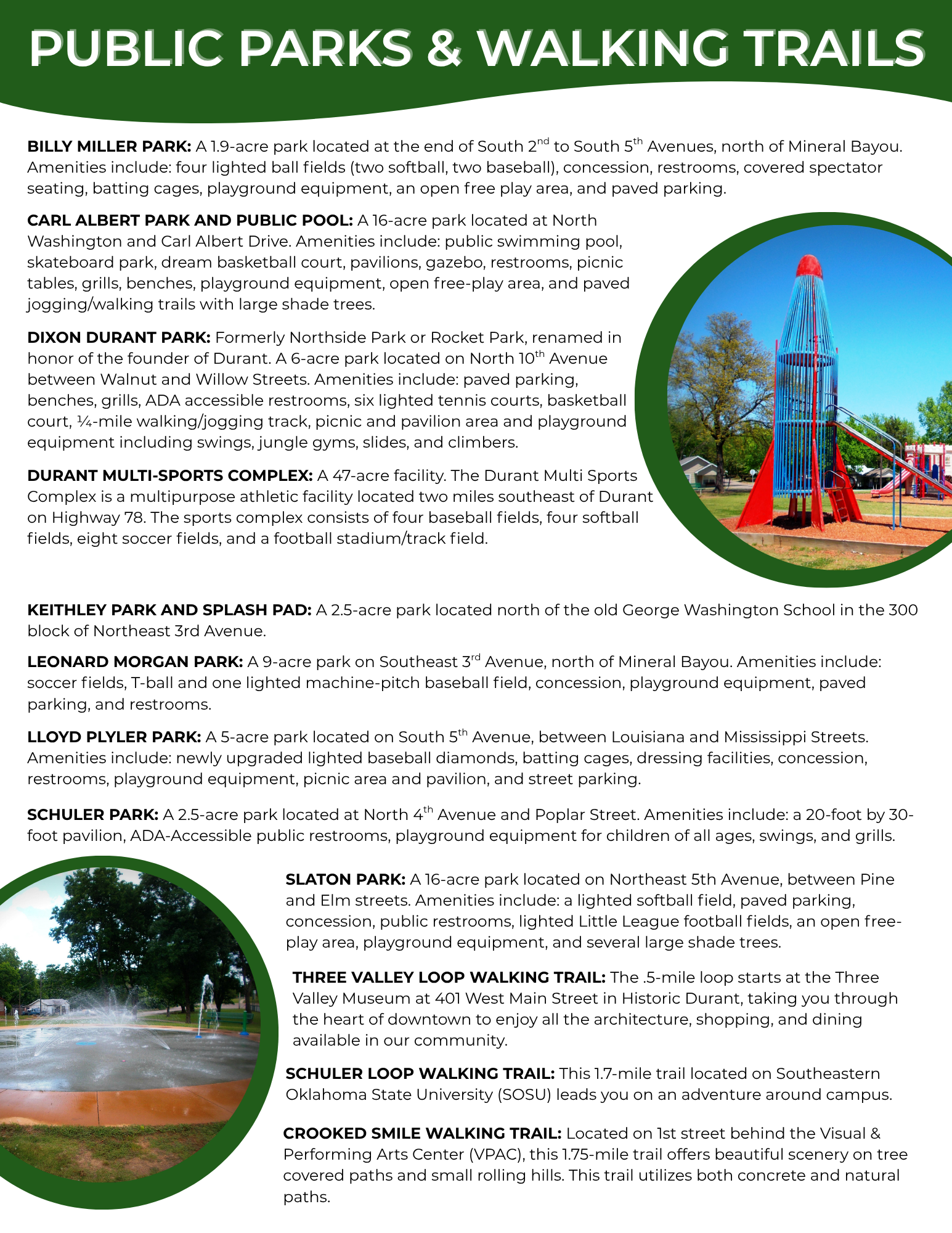 Contact the city of durant parks and recreation department at: (580) 924-8190.